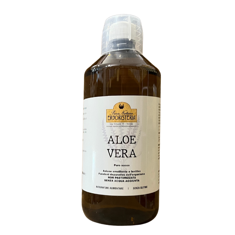 Puro succo di aloe vera pronto da bere, non pastorizzato, nonfiltrato e non diluito. Attenta selezione elavorazione delle foglie,