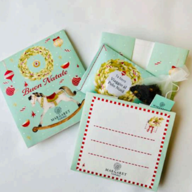 Busta auguri personalizzabile e scrivibile contenente un filtro di tè speziato "Viaggio al Polo Nord"