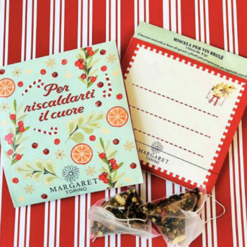 Busta auguri personalizzabile e scrivibile contenente un filtro di Miscela per Vin brulè