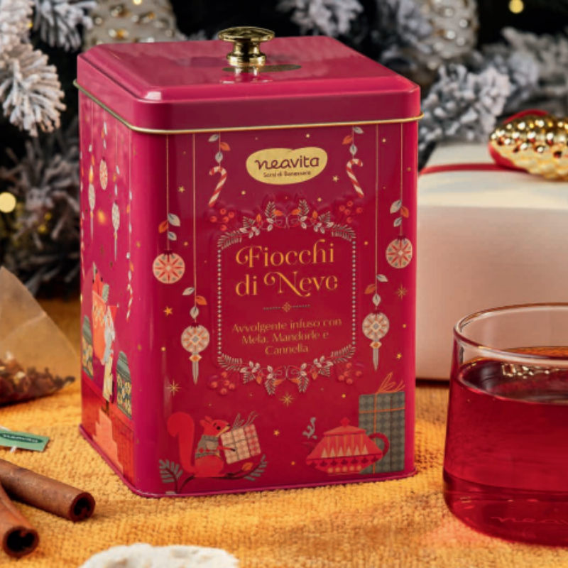 Scatola in metallo con 15 filtroscrigno di Infuso Fiocchi di Neve da 3,5 g l'uno
